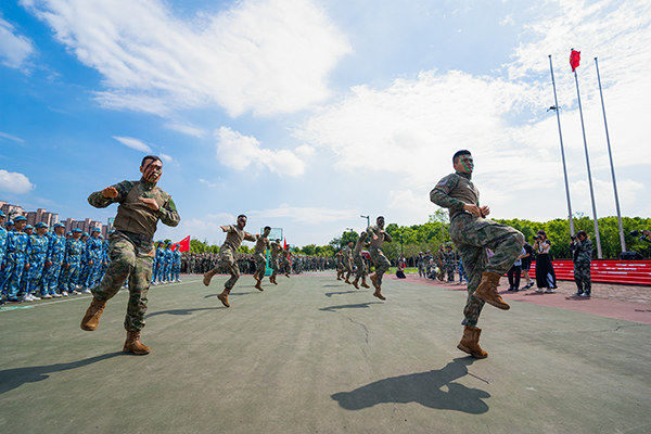 部队教官带来的精彩演出引爆了全场热潮,同学们用掌声和欢呼声感谢教官,致敬教官。迷彩青春、肆意绽放,他们用无畏、用拼搏、用刚毅展现中国军人的豪情和热血。