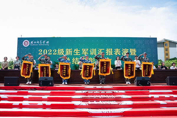 在历时两周的军事训练中,涌现出了一大批先进集体和个人。有精神风貌奖5个,内务优胜学院3个;队列会操学院12个;优秀组织奖4个、军训特别奖3个。人武部负责人宣读军训表彰文件,主席台领导为军训先进集体和个人进行颁奖。