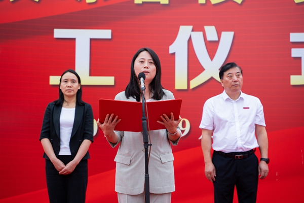 9月28日上午,学校科技综合楼、安吉园、校友中心项目开工仪式在东校区项目现场举行。副市长阮叶萍,安吉县委常委、常务副县长沈霞俊,市教育局党委委员、副局长朱建伟,校党委书记金佩华,党委副书记陈永华,副校长潘音,党委委员、宣传部长杜宁,党委委员、党校办主任劳士健,项目总承包单位浙江华昌建设有限公司董事长费武荣,设计单位中国联合工程公司第二建筑设计研究院项目负责人周煜,全过程咨询单位浙江东南建设管理有限公司董事长王伟东,跟踪审计单位建银工程咨询有限责任公司湖州分公司总经理吴浪霞等出席,学校相关职能部门、二级学院负责人、师生代表以及各参建单位项目负责人和建设者们一同参加开工仪式。仪式由潘音主持。
