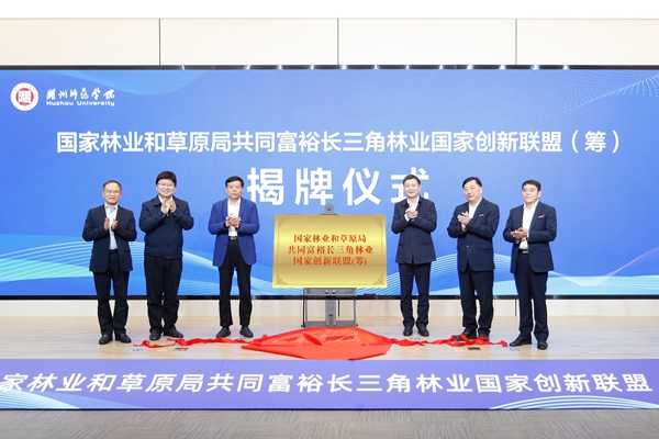 11月25日,由我校牵头筹建的国家林业和草原局共同富裕长三角林业国家创新联盟(筹)揭牌仪式暨一届一次理事会会议在我校顺利举行。中国林学会理事长赵树丛,浙江省林业局局长胡侠,湖州市副市长王晓军,浙江省政协农业和农村委员会副主任吴鸿,浙江农林大学副校长吴家胜,浙江省林业局二级巡视员何志华,中国林学会学术部主任曾祥谓,我校党委书记金佩华、校党委副书记陈永华、副校长舒志定,我校原校长、联盟第一届理事长张立钦以及其它联盟成员单位相关领导出席揭牌仪式。