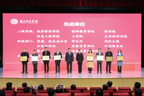 会议对2022年度获奖单位进行表彰。安定书院/创新创业学院、经济管理学院、教师教育学院、理学院、信息工程学院、工学院、生命科学学院、党委/校长办公室、学生处、研究生院、社会合作处、实验室管理处、计划财务处、保卫处、公共事务管理处等15个单位获评2022年度“工作先进单位”;体育学院、艺术学院、音乐学院、医学院/护理学院等4个学院获2022年度“单项工作奖”;纪检监察室获2022年度“工作进步奖”。