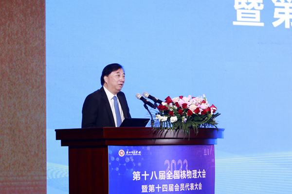 陈东风宣读中国核学会贺信。贺信指出,全国核学会核物理分会成立以来,加强了核物理研究在我国国民经济方面的应用研究,提升了我国核物理的研究能力与水平,团结凝聚了核物理研究领域的优秀人才,壮大了中国核学会的实力和影响力,为我国核事业建设作出了重要贡献。