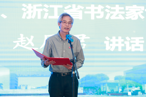 教师代表金泽珊发言。他表示,能加入以赵孟頫为名的学院让人倍感自豪。学院教师们将以认真严谨的治学态度和敬业务实的工作精神,立足教研与创作,不断传承创新,努力培育出一大批优秀的书画艺术人才。