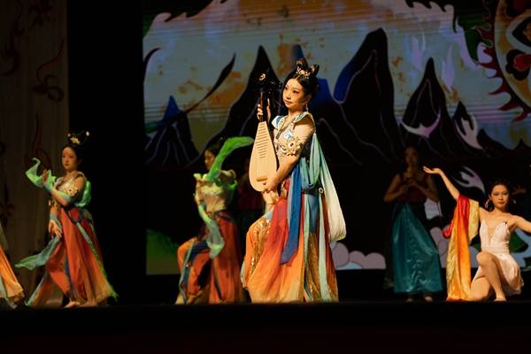 歌舞剧《“禾”梦一起飞》以“成长”为关键词,讲述了冬奥会花样滑冰运动员梦小禾和冰精灵一起穿越敦煌,遇到了一群准备演出的舞女,为摆脱困境,共同开启一段寻找九色鹿的奇幻之旅的故事。该剧集童话、神话于一身,充满了玄幻色彩,展现了“成长的道路并非一帆风顺,要敢于迎难而上,努力实现心中梦想”的道理。同时融入冬奥会、敦煌等古今元素,以浪漫主义的手法和焕然一新的舞台艺术风格,极大地丰富了儿童歌舞剧的艺术形式和内容,现场妙趣横生,掌声、笑声、欢呼声不断。