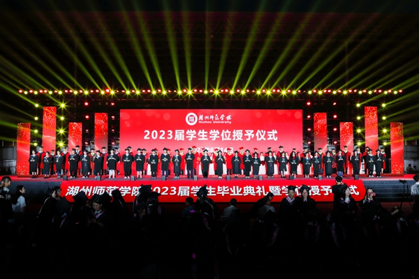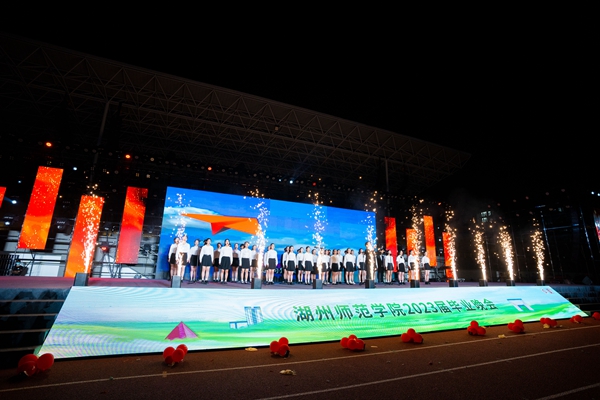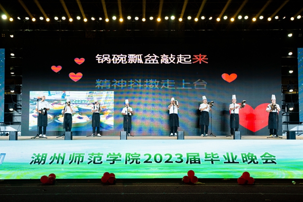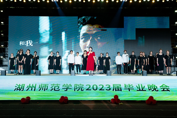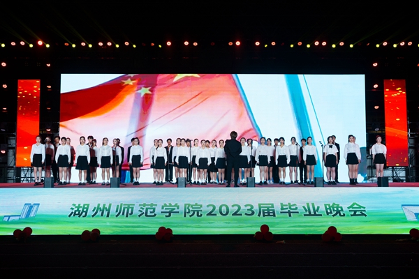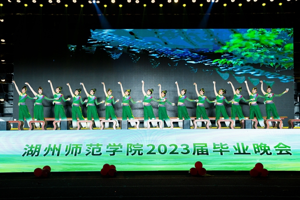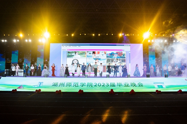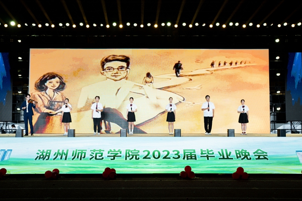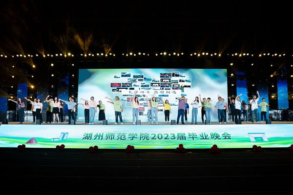 毕业生晚会上,体育学院活力十足的开场舞《我的未来式》点燃了全场的气氛。教师教育学院的萨克斯重奏《Mojito》让观众陶醉于悠扬的乐声中。人文学院的诗朗诵《和恩师一起走过的时光》讲述着老师的谆谆教诲,表达了学子们对教师的感激之情。校园十佳歌手带来的歌曲串烧《这些年我们一起爱过的歌》以青春旋律,致敬怀揣梦想、敢于拼搏的求学时光。音乐学院舞蹈团带来了大艺节舞蹈甲组一等奖作品《茶飘香》,将茶文化与舞蹈相结合,充满了生机与灵动。后勤服务中心的三句半《“食”味情话》以幽默风趣的语言,表达了对毕业生们的热情和不舍。音乐学院的混声合唱《有我》展现了新时代青年以实干精神、写壮丽诗篇的青春使命感。毕业生代表的走秀节目《湖师“变形记”》展现了毕业生们在湖州师院的成长历程和丰富收获。音乐学院的乐队表演《海阔天空》、学工教师代表的合唱《凤凰花开的路口》、教师教育学院合唱团的大合唱《如愿》,表达了对毕业生们的美好祝愿。晚会在体现祖国富强繁荣、一步步走向美好明天的大合唱《歌唱祖国》中落下帷幕。