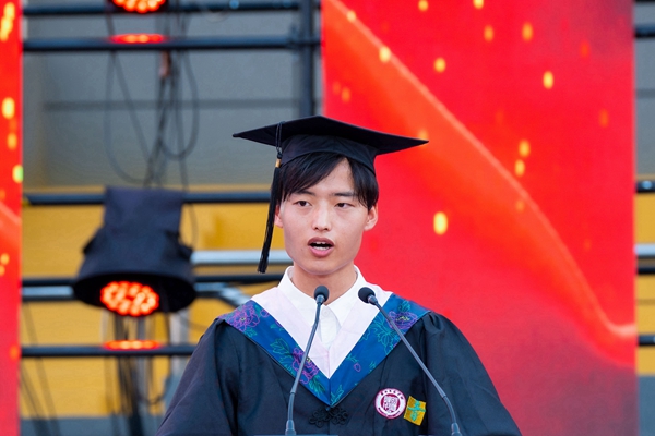来自音乐学院、考取中央音乐学院硕士研究生的本科毕业生代表刘沅杰表示,学校给予同学们的不只是知识和能力,更是价值和情怀,是湖师精神。他向母校及领导老师们致以崇高的敬意与感谢,并祝福同学们在未来的道路上敢于有梦、勇于追梦、勤于圆梦。