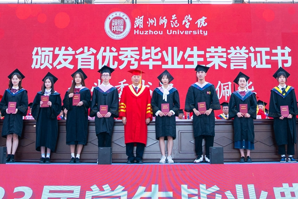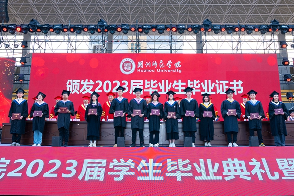 舒志定宣读了2023届毕业生和省优秀毕业生名单,校党政领导班子为毕业生代表颁发了毕业证书。