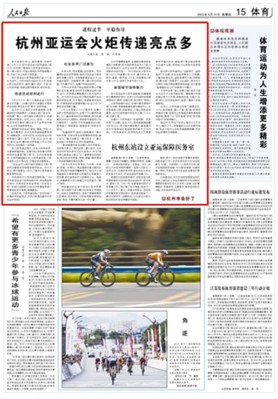 2023年9月14日,《人民日报》报道我校志愿者“湖小青”们,分布在驻地酒店、亚运火炬传递起跑仪式、火炬传递沿线、火炬传递收火仪式等点位,开展各类志愿服务。链接如下: