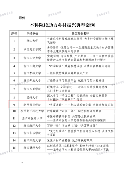 近年来,我校深入贯彻习近平总书记关于乡村振兴的重要指示精神,充分发挥学科、科技、智力和人才优势,拓宽合作领域,创新合作模式,全面落实乡村振兴战略。在服务浙江的基础上,为全国各地提供更多智力支持,为推进乡村振兴、共同富裕贡献“湖师力量”。