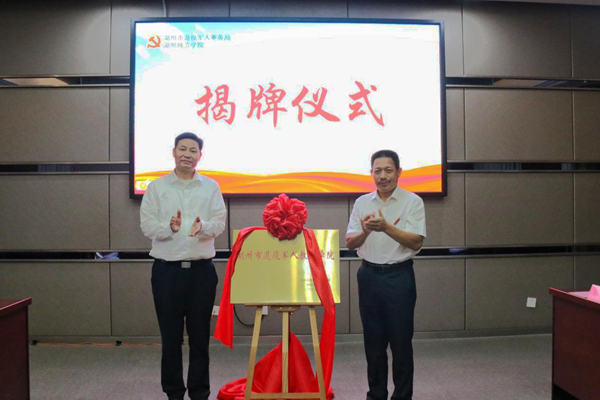 9月22日下午,我校与湖州市退役军人事务局举行“湖州市退役军人教育学院”揭牌仪式。副校长舒志定,湖州市退役军人事务局党组书记、局长张振光出席,我校社会合作处负责人,继续教育学院负责人及教工代表参加仪式。