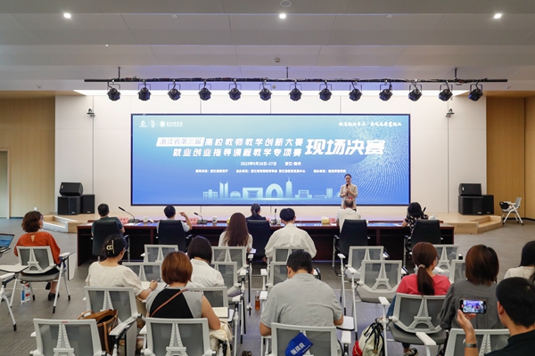 9月26日至27日,浙江省第三届高校教师教学创新大赛就业创业指导课程教学专项赛决赛在我校举办。本次比赛由浙江省教育厅指导,浙江省高等教育学会和浙江省教育发展中心主办,我校承办。省教育厅高教处副处长廖波、省教育发展中心副主任罗万里,校长许慧霞、副校长舒志定赴比赛现场检查指导,来自全省高校的100余名就业创业工作负责人及就业创业指导课程教师现场观摩。