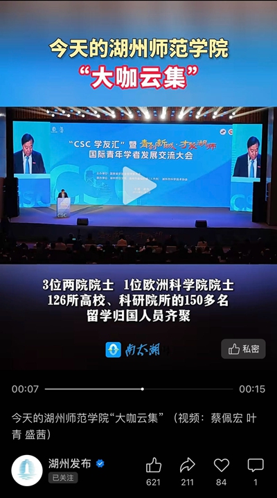 2023年11月2日,湖州发布报道“CSC学友汇”暨“青创新城 才聚湖师”国际青年学者发展交流大会在我校举行。本次会议由国家留学基金管理委员会主办,我校及湖州市委组织部(人才办)、湖州市科学技术协会承办。具体如下:
