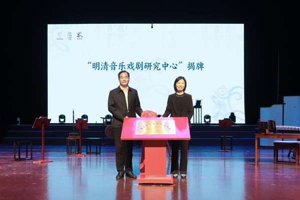 湖州市委宣传部副部长查建华和长兴县委常委、宣传部部长沈佳文共同为“明清音乐戏剧研究中心”揭牌。