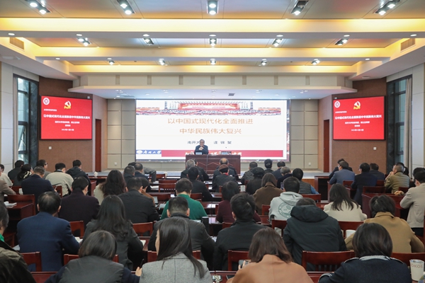 11月13日下午,学校在明达楼126会议室召开主题教育读书班专家导学报告会,邀请南开大学讲席教授、博士生导师逄锦聚,作题为“以中国式现代化全面推进中华民族伟大复兴”的报告。校党委书记金佩华,校纪委书记任伟海,副校长潘音、楼建林出席,学校全体中层干部参加。