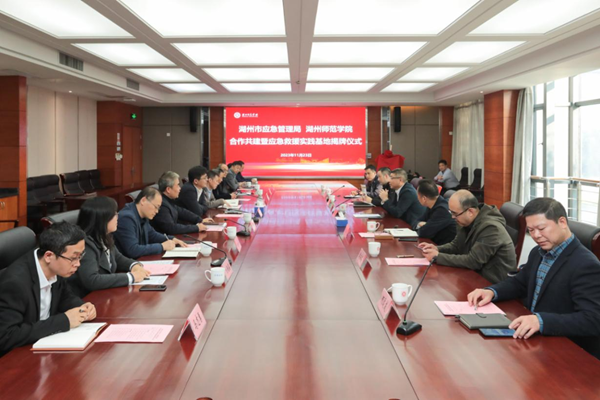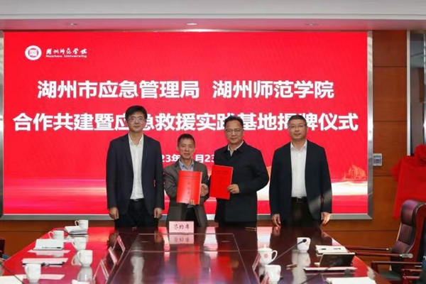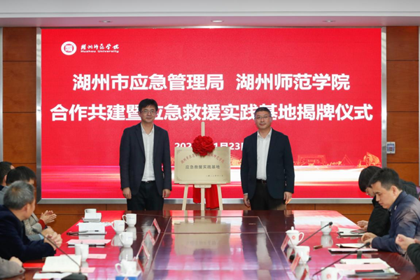 11月23日下午,我校与湖州市应急管理局举行合作共建暨应急救援实践基地签约揭牌仪式,副校长李庆峰、市应急管理局局长姚星出席,市应急管理局领导班子成员及相关处室负责人,我校实验室管理处、社会合作处、保卫处及相关二级学院负责人、实验室教职工代表参加仪式。