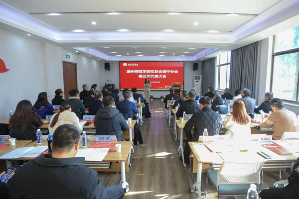 沈丁华代表嘉兴校友分会向海宁分会顺利换届表示祝贺,同时号召广大海宁校友一如既往关心和支持母校发展,为创建高水平“湖州师范大学”贡献校友智慧和力量。