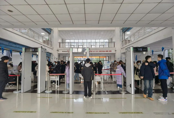 学校考务秉持“以生为本”理念,努力为考生创造良好的考试条件。在醒目位置设置考点试场发布图、指引标识和温馨提醒标牌;在考试指令播报中加入温馨提示,既对考生进行精神鼓励和人文关怀,也对考生提出严格的纪律要求;设置党员服务点,安排师生党员志愿者指引考生顺利到达考场;在考场外按考场顺序设立违规物品存放区,并贴心地提供了取暖物品;配备专业医务人员,确保考点的应急医疗。