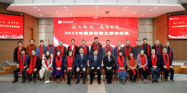 12月27日上午,学校举行“薪火相传 感恩有您”2023年退休教职工荣休仪式。校党委书记金佩华,校长许慧霞,校党委副书记、工会主席陈永华出席,相关职能部门及二级学院负责人、各分工会主席及师生代表70余人共同祝福38位退休教职工。仪式由陈永华主持。