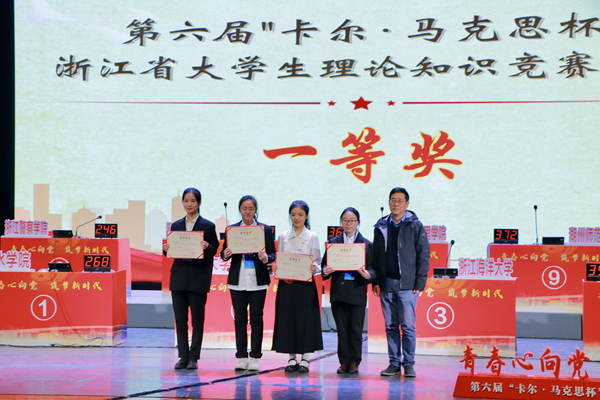 1月7日,第六届“卡尔·马克思杯”浙江省大学生理论知识竞赛决赛在浙江工商大学举办。由来自马克思主义学院的姜月华、方子珊、沈吴凡和安定书院的朱哲凡同学组成的我校代表队以高校本科组总分第一名的成绩斩获一等奖。这是我校继2019年开始参加此项竞赛获得两次三等奖、一次二等奖后的新突破,马克思主义学院李秀娟、何燕和高亚男三位老师荣获优秀指导教师奖。