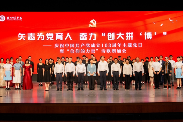 6月28日下午,学校在东校区会堂举行“矢志为党育人、奋力创大拼‘博’”——庆祝中国共产党成立103周年主题党日暨“信仰的力量”诗歌朗诵会。校党委领导班子成员出席。各二级党组织班子成员和师生党员代表参加。校党委副书记陈永华主持。