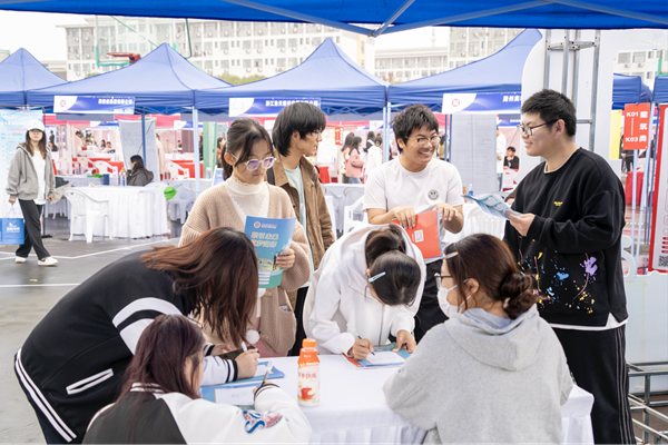 招聘会随处可见用心。为切实提高毕业生应聘求职能力,学校就业指导中心在招聘会现场设置AI简历与面试指导专区,邀请高校和企业专家为学生提供简历修改、面试技巧等“一对一”指导服务。设立国内外升学、考公考编、应征入伍等咨询专区,为毕业生们提供了高效、便捷的就业指导服务。此外,招聘会现场还同时举办了第二届生涯嘉年华活动,通过大型户外游戏式、闯关式体验活动,助力学生自我探索和职业探索,唤醒生涯意识。