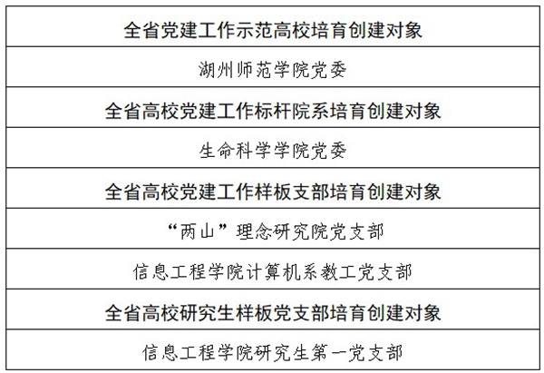 近年来,学校党委认真贯彻落实新时代党的建设总要求和新时代党的组织路线,强化党的全面领导,切实履行管党治党、办学治校主体责任,纵深推进党建示范创建和质量创优,累计获批全国、全省党建“双创”项目21项,位居省内同类高校前列,形成以高质量党建引领高质量发展的良好局面。下一步,学校党委将严格按照省委教育工委培育创建工作的相关要求,对标“六个过硬”,深入实施“政治引领”“培根铸魂”“强基提质”“变革重塑”“作风清廉”等五大行动,进一步提升学校党的领导力、办学生命力、基层组织力、事业发展力和干事廉洁力,为冲刺“创大拼‘博’”、加速创建高水平“湖州师范大学”提供坚强组织保证。