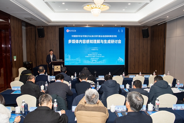12月15日,由中国图学学会主办,我校信息工程学院与中国图学学会可视化与认知计算专委会联合承办的“多媒体内容感知理解与生成研讨会”在浙江湖州举行。本次会议吸引了来自全国多家科研单位和高校的60余位专家、学者及学生参会。我校副校长李庆峰、中国图学学会可视化与认知计算专委会主任杨鑫分别致辞,对参会专家学者的到来表示热烈欢迎。
