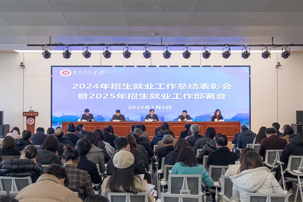 1月2日下午,学校召开2024年招生就业工作总结表彰会暨2025年招生就业工作部署会。副校长(主持行政工作)盛况,校党委副书记丁敢真,副校长舒志定,校党委委员、宣传部长朱小芳,校党委委员、党校办主任沈国丰,发展规划处、学生处、研工部、教务处、校友办、团委、后勤服务中心负责人,各二级学院院长、党委(总支)书记、分管招生工作副院长、副书记,学院招生联络员、毕业班班主任、毕业年级辅导员等180余人参加会议。会议由丁敢真主持。