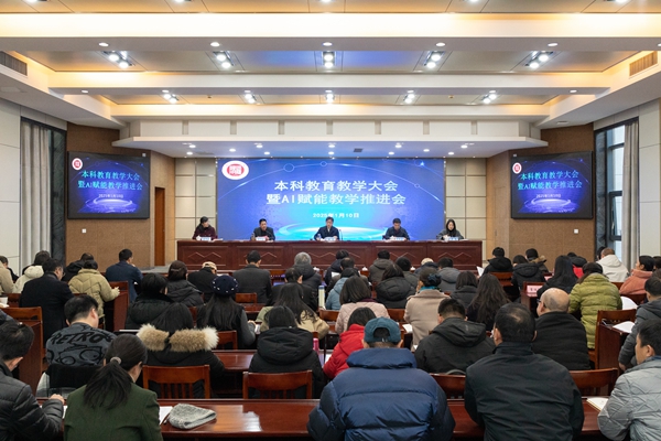 为明确本科教育教学工作目标,把握2025年教育教学工作重点,推动人工智能与教育教学的深度融合,1月10日,学校召开本科教育教学大会暨AI赋能教学推进会。副校长(主持行政日常工作)盛况、校党委副书记丁敢真、副校长舒志定出席,校长办公室、发展规划处、学生处、团委负责人,各二级学院院长、分管教学工作副院长,系(部)主任、教学办主任、专业负责人,校院两级教学督导、教师代表等参加了会议。会议由舒志定主持。