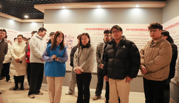 在学院雷锋活动示范点展厅,学生讲解员以“垂范、模范和示范”为主线,系统展示了学院“孤独症儿童帮扶”“电商助残”志愿服务队十余载的发展历程:学院2012年创建助残志愿服务体系,累计培育志愿者2000余名,开展助残活动400余场,服务时长突破8万小时,先后获评中宣部全国学雷锋活动示范点、国务院全国助残先进集体等26项省级以上荣誉。展柜中的志愿服务证书、受助对象手写感谢信等实物档案,诉说着跨越世纪的爱心接力与新时代雷锋的行动。