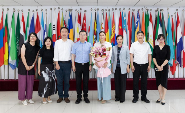 许慧霞高度赞扬莎何娜斯的见义勇为精神,勉励她在日后的学习和工作中,继续精进专业技能,当好中华文化的国际传播使者,为促进中俄文化交流作出更大贡献。与会领导老师纷纷表示,莎何娜斯在危急时刻挺身而出的勇敢,展现了湖师青年的社会担当,为全体师生树立了榜样,为学校赢得了社会赞誉。会后,与会领导老师共同为莎何娜斯送上鲜花和祝福,并合影留念。