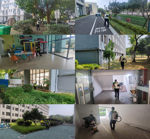 为保障广大师生员工的健康与安全,预防疾病传播,9月7日至12日,校爱卫办组织开展了防蚊灭蚊消杀工作,对学生宿舍、教学楼、图书馆、食堂、办公楼等人员密集场所的外环境,以及校园内绿化带(尤其是低矮灌木、草丛)、垃圾收集点及周边、下水道口等场所一一进行喷洒药水,清理蚊虫孳生地,确保消杀彻底,做到不漏一处、不留死角。