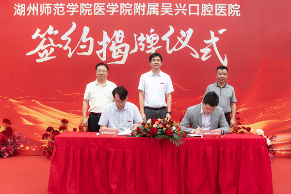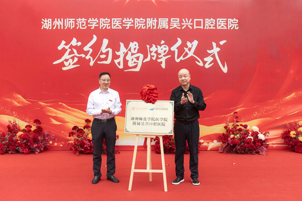 仪式上,双方代表签署了合作协议书,并共同为优米app怎么下载软件医学院附属吴兴口腔医院揭牌。