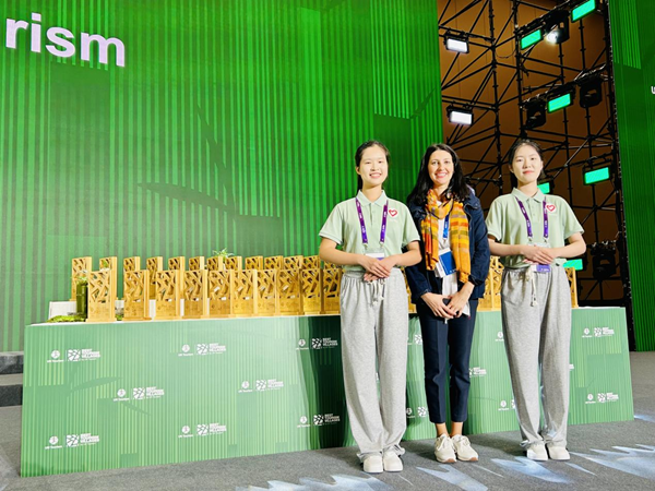 活动现场,我校师生志愿者们以积极的精神面貌和专业的服务水准,在嘉宾接待、会场保障、语言翻译、后勤保障等四大核心岗位做好工作。多位与会外宾感慨,从下飞机的那一刻起,便被志愿者温暖的笑容与细致的服务所感染。外国语学院姚振军老师表示,平凡的志愿工作是搭建国际交流桥梁的重要一环,未来将持续以热忱传递湖师温度。安定书院学生志愿者林诗彤表示,很庆幸自己能成为其中一员,以青春之力助力这场全球文旅盛事的圆满落幕。