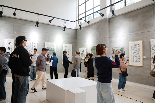 陈永华表示,今年正值“绿水青山就是金山银山”理念提出20年,老教师们精心创作了30幅书画作品,其中既有专业教师的匠心独运,也有业余爱好者的厚积薄发,饱含着对教育事业的赤诚情怀和对绿色发展的深刻思考。他强调,老教师们是学校发展的奠基者和精神家园的守护者,他们以艺术创作传递正能量,用文化力量践行初心使命,充分展现了“老骥伏枥,志在千里”的担当精神和“银发生辉,余热生温”的奉献情怀,这既是对“师者匠心”的生动诠释,也是对我校“明体达用”校训精神的传承与延续。他表示,本次展览不仅是一场艺术盛宴,更是一堂生动的思政课,希望广大师生能从中领悟“两山”理念的理论价值与实践伟力,感受老一辈教育工作者的职业品格,并期待退休教工们继续为学校发展和青年成长贡献力量。