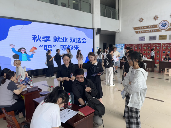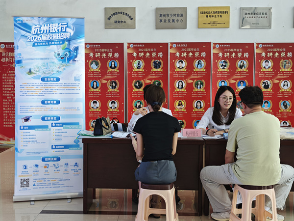 近日,经济管理学院2026届秋季小型双选会在学院一楼大厅开展,来自义乌的浙江兴桥龙文化传媒有限公司,德清万豪酒店&德清万豪万枫酒店,以及杭州银行、招商银行、平安银行5家企业参加了双选会,提供了银行业务、酒店管理、文化传媒等20余个实习、就业岗位,吸引了学校相关专业毕业生到场参与,现场气氛热烈。