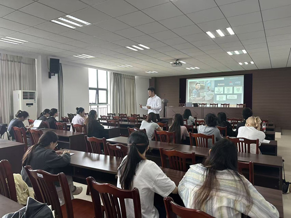 双选会开始前,经济管理学院还邀请浙江兴桥龙文化传媒有限公司、德清万豪和万枫酒店等单位开展了就业宣讲。各单位负责人介绍了企业文化、岗位需求、公司发展状况等,也为同学们适应职场分享了宝贵的经验。宣讲会现场,同学们就实习时间、实习岗位要求等与用人单位负责人展开交流。