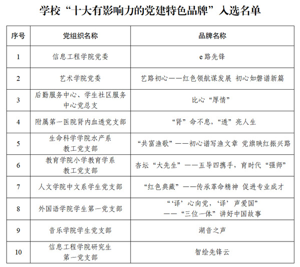 据悉,学校自2015年起连续10年开展党建特色品牌和“党支部建设创新奖”评选,累计评选出创新项目96项,并在此基础上系统开展“十大有影响力的党建品牌”培育创建,努力推动党建从“盆景”变“风景”、从“培育”到“绽放”。接下来,学校党委将以此次评选为新的起点,持之以恒强化党建特色创新,以经营理念推动党建品牌建设提质增效,以品牌之力续写高质量党建引领高质量发展的新篇章。
