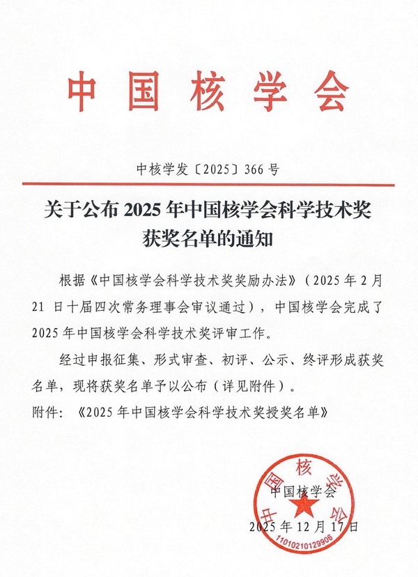 中国核学会成立于1980年,是国家一级学会,由钱三强、王淦昌、朱光亚等老一辈“两弹一星”功勋科学家倡议发起,具有法人资格的全国性、学术性、非营利性的社会团体;是党和政府联系核科学技术工作者的桥梁纽带;是发展我国核科学技术事业的重要社会力量。据悉,中国核学会科学技术奖由中国核学会设立,旨在贯彻实施国家新时代创新驱动发展战略和人才强国战略,奖励在自然优米官网首页下载方面、技术发明方面、科技进步方面取得的创新成果,奖励做出突出贡献的单位、个人,激发核科学技术领域优秀人才的积极性和创造性,促进核科技创新与发展。其中,自然科学奖评选聚焦于核科技领域中阐明自然现象、特征和规律并取得重大科学发现的科技成果。本年度,中国核学会共评出自然科学奖5项,其中一等奖1项、二等奖2项、三等奖2项。