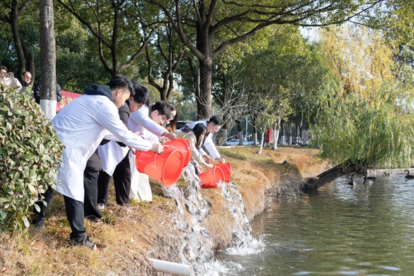为深入践行“绿水青山就是金山银山”理念,进一步改善我校德清湖水域生态环境,12月25日,我校携手湖州市农业行政执法队、吴兴区农业行政执法队,在德清湖水域开展了增殖放流活动。此次活动旨在通过科学放流,补充和恢复德清湖水生生物资源,改善德清湖水域生态环境,提升水体自净能力。学校相关领导出席,后勤服务中心、社会合作与发展联络办公室、生命科学学院负责人等参与,并与市、区执法人员、师生代表共同放流。