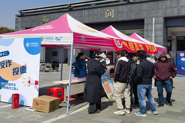为增强师生防范电信网络诈骗意识,有效提升师生识骗、防骗能力,筑牢校园反诈“安全门”。3月19日,安全保卫部联合湖州移动吴兴分公司,共同举办主题为“电信反诈,护航青春”宣传教育活动。