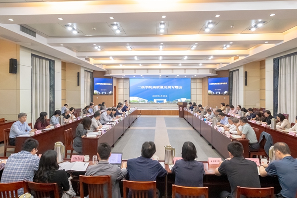 4月29日下午,学校召开二级学院高质量发展专题会,研究一季度学校主要发展指标推进情况。校党委书记许慧霞,副校长(主持行政日常工作)盛况,党委副书记陈永华、丁敢真,纪委书记任伟海,副校长李庆峰、楼建林,党委委员、组织部部长劳士健,党委委员、宣传部部长朱小芳,党委委员、党校办主任沈国丰出席,各职能部门、直属单位负责人,各二级学院院长、书记参加会议。