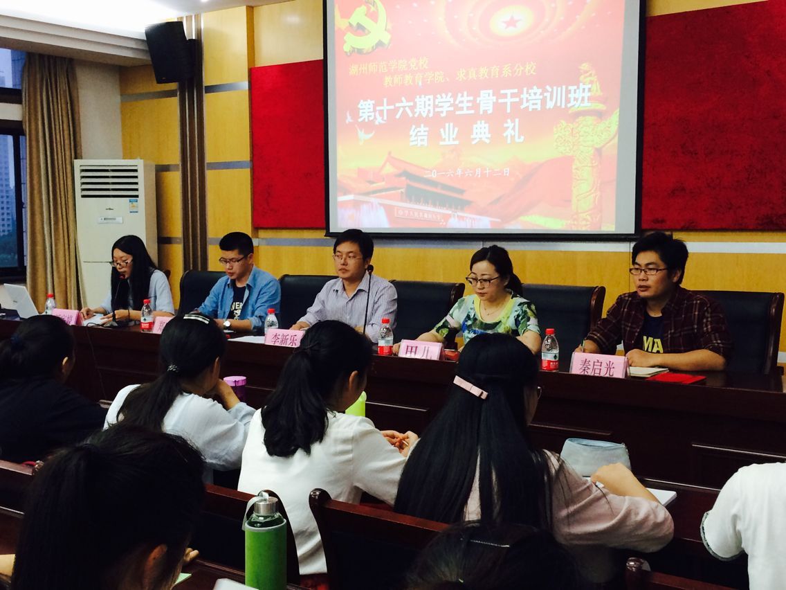 2016年6月12日晚6:30,优米app怎么下载软件党校教师教育学院、求真教育系分校第十六期学生骨干培训班结业典礼于10幢五楼报告厅准时开始。学院院长助理、校务委员会副主任李新乐老师,学院学工办主任、校务委员会委员田儿老师,学院辅导员、校务委员会委员郑晓锋老师,学院辅导员、校务委员会委员秦启光老师,党务管理中心理论学习部潘宇婷同学以及155位学员参加了此次结业典礼。