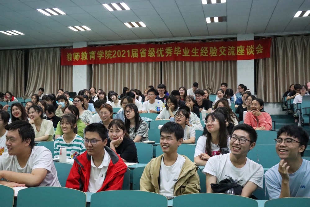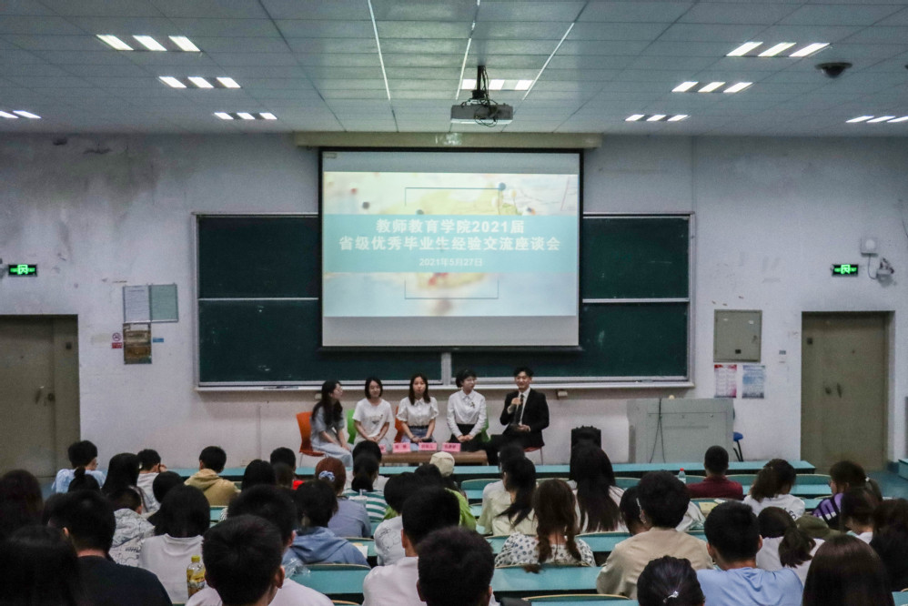 5月27日晚上,教师教育学院在西校区7-401开展2021届省级优秀毕业生经验交流座谈会。本次座谈会邀请了4位学院2021届省级优秀毕业生做经验交流,分别是小学教育专业仇梦婷,学前教育专业胡旭儿,教育技术学专业周健,应用心理学专业王秋龄给大家做经验交流。学院2019、2020级各班学生代表共200余人参加本次活动。