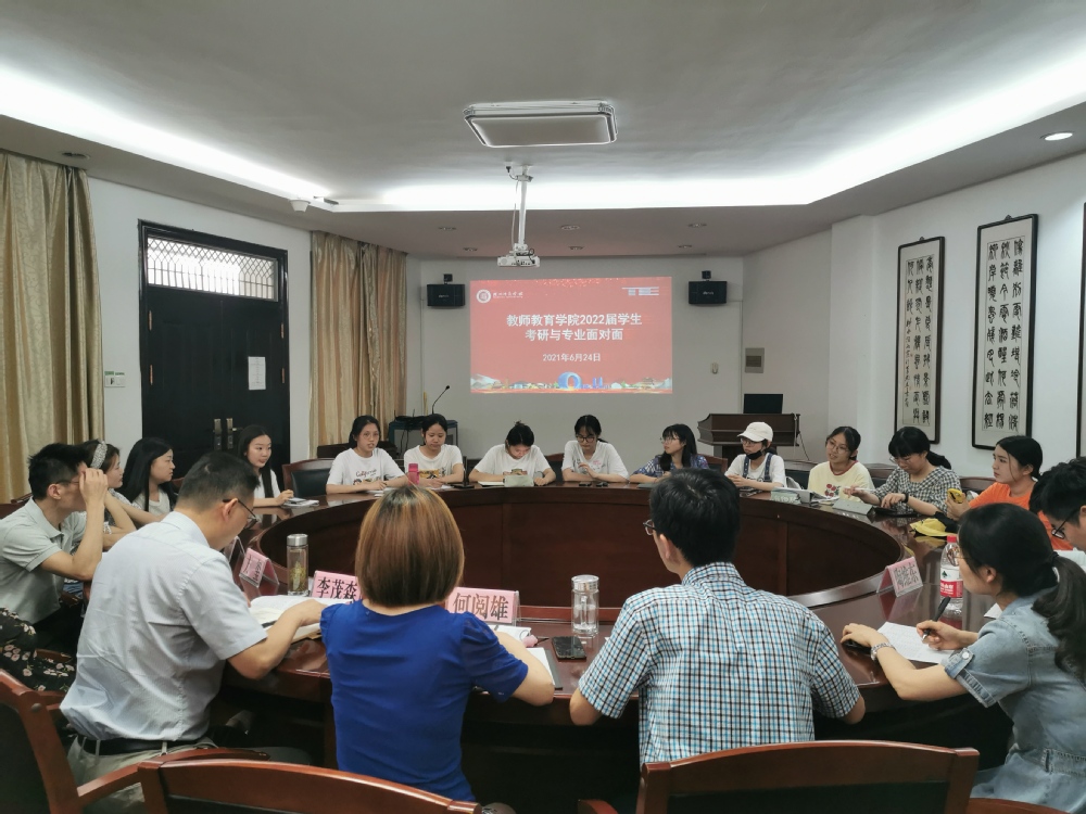 6月24日下午,教师教育学院在11-111会议室开展2022届学生考研与专业面对面座谈会,学院党委书记何阅雄,副院长李茂森,各系负责人,辅导员,2022届考研学生代表参加本次座谈会。学院党委副书记朱竞主持会议。