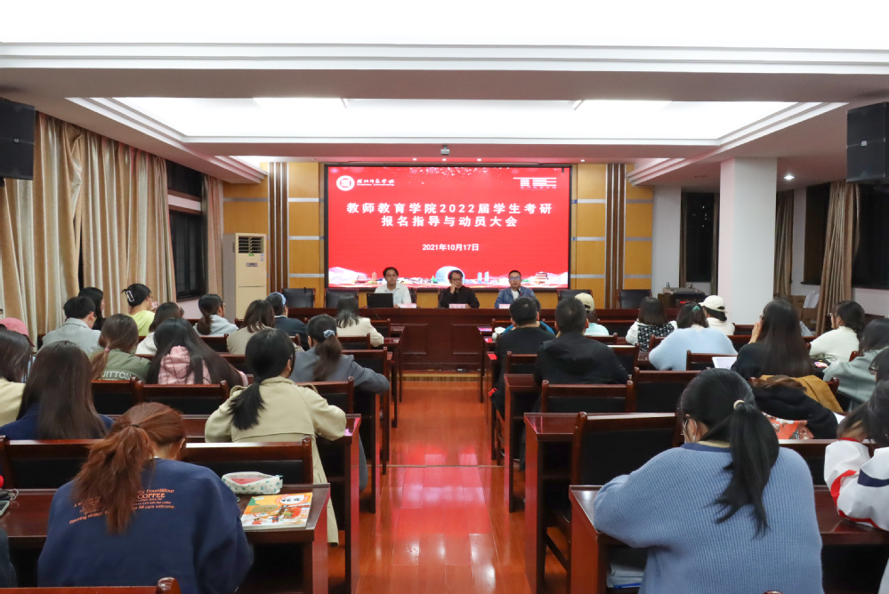 会上,钱乾老师作了《关于2022年硕士研究生招生录取注意事项》的解读,为同学们介绍了2022年全国硕士研究生招生整体概况,他提到:在“双减”政策和地方政府对中小学老师学历提升的要求下,我们师范专业学生要冲在前面,努力为教育事业发展做贡献。随后钱老师介绍了2022年硕士研究生招生报考特点、考前注意事项等,要求同学们报考以后要及时了解所报考学校的通知公告、联系方式等。