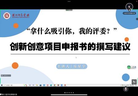 为贯彻落实学校创新创业工作会议精神,426下午,教师教育学院、一“职”陪你辅导员工作室开展大学生职业生涯规划大赛专题培训,讨论学习交流教师教育学院学生如何提升比赛竞争力,全院参赛本专科学生、硕士研究生参与本次线上专题培训