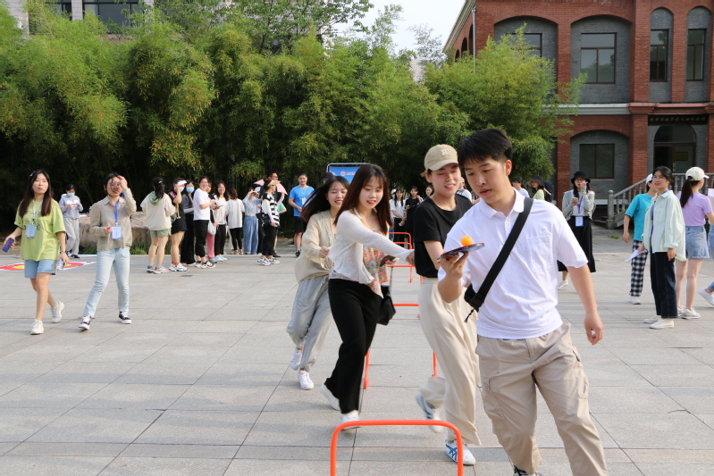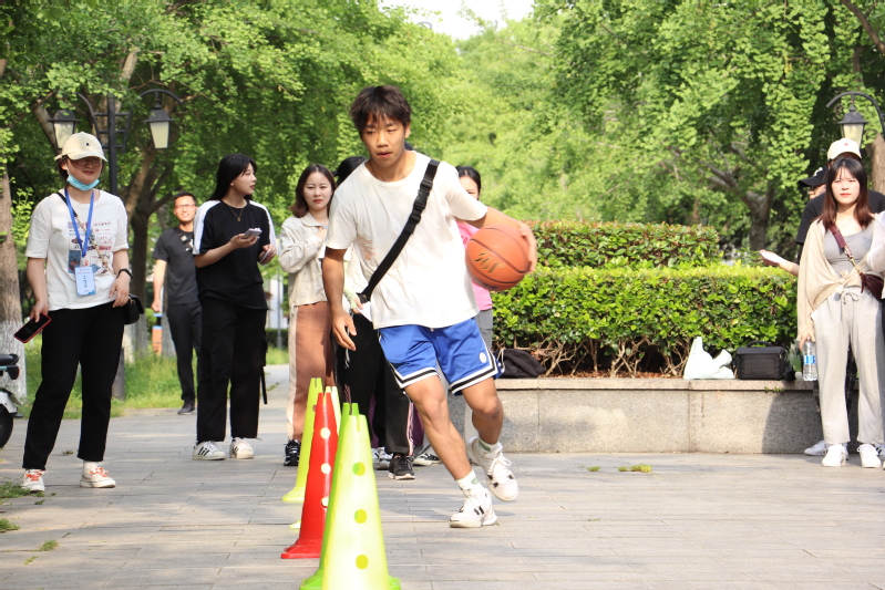 下午场于16:00在胡瑗广场拉开序幕,共有5个趣味运动项目,分别是:巧投沙包、三心二意、趣味篮球、盲人发球、人肉滚雪球。每一个项目都将竞技与娱乐相结合,鼓励同学积极参与、大胆尝试、放松身心,每位参赛同学都表现出了极佳的运动状态,正可谓“恰同学少年,风华正茂”。我院教师也参与到本次活动中来,与同学们共同运动、感受趣味。活动中,个人赛妙趣横生,同学们沉浸在运动的欢乐中;团队赛热闹激昂,选手们努力追求着更好的合作。高大庄重的胡瑗塑像,仿佛绘满了青春的色彩。