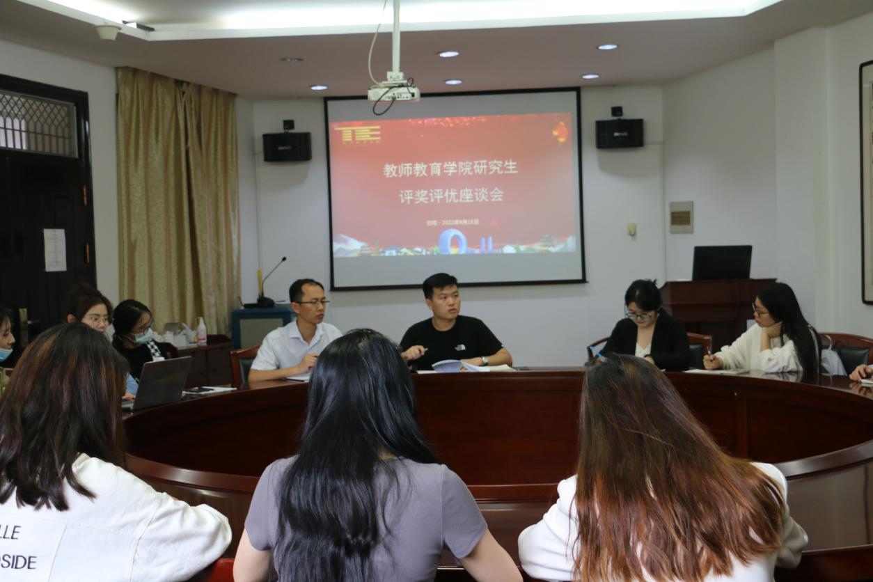 9月15日中午,教师教育学院在11-111会议室召开2021-2022年度评奖评优座谈会。教师教育学院党委副书记朱竞出席,辅导员李硕老师以及各年级研究生代表参会。