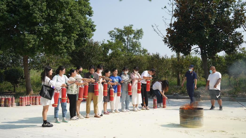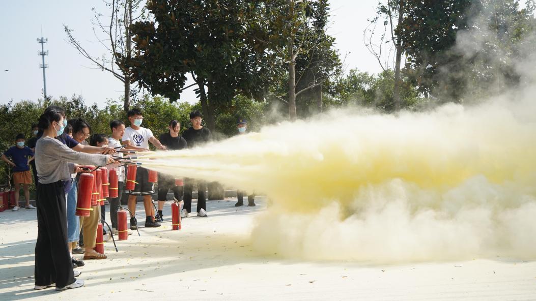 演示完成后,学生们在负责人的指导下积极参与,分批进行灭火尝试,逐一体验了使用灭火器扑灭油桶火灾项目。
